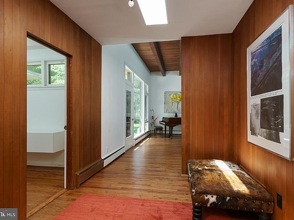 This one-of-a-kind home is located on a private lane close to downtown Princeton and the Johnson Park School, reachable by a footpath from the backyard. A Mid Century Modern beauty, it is full of pleasant surprises which include a garage that was converted into a cheerful home office plus a legal apartment with a separate entrance and driveway providing monthly income. This exceptional home is distinctively presented with its floor plan centering around a gorgeous great room showing off broad expanses of glass, beamed ceilings, and an eye-catching fireplace. Looking out to its naturalized 3-acre setting, you’d never know bustling Nassau Street was right around the bend! Four bedrooms utilize two and a half updated bathrooms in a secluded corridor off the sky-lit foyer, each with individual personality. The whitewashed kitchen with terracotta tile floor opens to a true breakfast room with laundry adjacent. Both the home and apartment have patio areas that aren’t visible to one another, so everyone has a chance to enjoy the scenery without foregoing privacy.