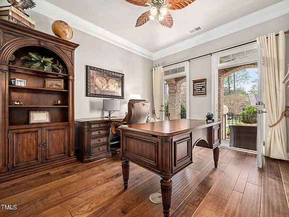 Imagine effortless entertaining in your gourmet kitchen showcasing a waterfall-edge island and double ovens. Retreat to your luxurious first-floor primary suite, a haven of relaxation complete with a cozy sitting area and fireplace. Host unforgettable gatherings on the spacious screened porch with its inviting fireplace. Enjoy the convenience of a first-floor study featuring elegant French doors. Enjoy the flexibility of the spacious bonus room and separate loft which can be used for a home theatre, workout area, and additional workspace. A three car garage completes the home. Embrace the lifestyle you deserve in sought after Cary, NC. Regency offers the perfect blend of fun and convenience for families. Splash in two swimming pools, play on the playground, and challenge friends to tennis or pickleball. Minutes to Whole Foods and Waverly Place shopping and restaurants!