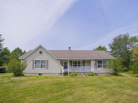 Beautiful one floor living with 3 bedrooms, 2 bathrooms, and a finished family room in the basement. Nice open floor plan with a large kitchen that is open to the living room and the dining area with sliders to the back deck where you can grill, entertain, or just relax, and enjoy your privacy. The primary bedroom has its own bathroom and walk-in closet. Sit in your rocking chair on the covered front porch and watch the birds and wildlife. There is a shed for your toys and lawn and garden tools as well. All this is set on 2.59 surveyed acres! Country living yet conveniently located under 15 minutes to downtown Farmington, UMF, schools, shopping, hospital, skiing, golfing, and Wilson Lake.