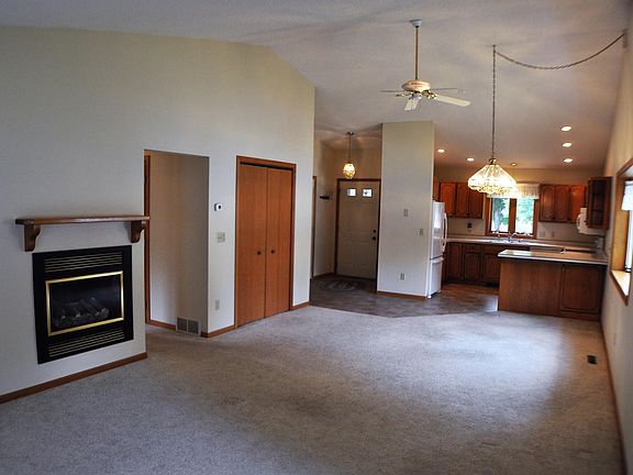 This 2 bedroom 2 1/4 bath home offer great one level living. Some of the wonderful features of this home include an open floor plan, vaulted ceilings, a gas fire place to cozy up to on those long winter nights, a spacious primary bedroom with walk in closet, primary bedroom 3/4 bath and laundry, plus an excellent 3 season room off the back of the home. Other features include vinyl siding, patio, full basement with studded walls, 2 egress windows for additional bedrooms and or family room, and stubbed in plumbing for an additional bathroom, plus a 2 stall attached garage.