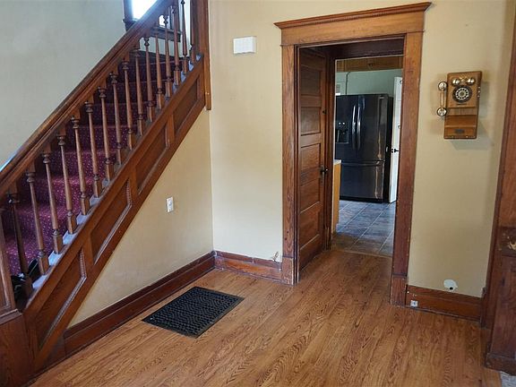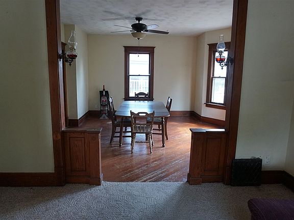 Graceful older home with many beautiful features and new upgrades! New solar panel system installed December 2021 so potential buyers have no electric bill. Formal dining room, open staircase, detached 2 story garage/workshop. Above ground pool with large deck. Office or n/c bedroom in lower level. New front porch with sun shades, sidewalks and house roof in 2020. New electrical panel in 2021.