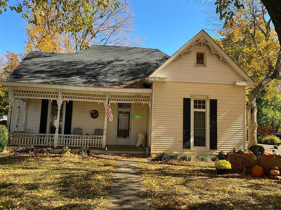 Victorian with beautiful lattice work, spacious and charming, 1 1/2 story with front door and porch and side door and porch, 3 bonus rooms, 3 bedrooms, combo living room/dining room, eat in kitchen, needs some repairs as does some other areas of house. It has a laundry closet, fireplaces do not work, built in bookshelves, high ceilings. Some windows replaced, cellar has water heater. Garage studio apartment has 1.5 bath, deck, 2 car garage, window AC, 3 car blacktop driveway shared with main house and garage apartment. Workshop has 1/2 bath, separate driveway. Garage studio and workshop rented out month to month, ask agent for more details.