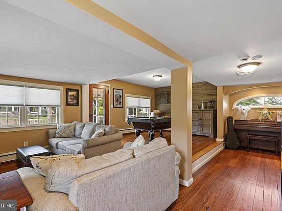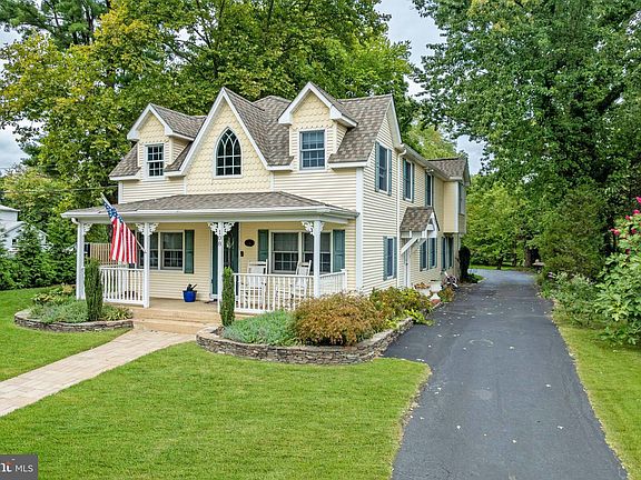 MAIN STREET IN HISTORIC ALLENTOWN! Old world charm visits modern amenities in this 4BR, 2.5BA home built with Victorian, Craftsman and Colonial influences on 1.68 acres that back to private property, then creek, then Heritage Park. 2 Woodburning fireplaces - 1 primary and 1 family room. Cast Iron baseboard radiators. Wood flooring with original period influences. Completely renovated in 2002 and recent updates include shiplap accent wall in rec room, richly finished built in shelving in formal LR, refinished flooring, kitchen w/granite countertops, stainless appliances and plenty of space for the family gourmet. Upstairs newly redone main bath, primary bath w/new electric skylight, linen closet, frameless shower and double vanity. Outside paver entertaining area, hardscaped and fenced dog pen w/shade tree, newly pavered walkway to front door, oversized driveway fits many cars. Plus, detached garage has heated shop area and loft for storage. Walk to charming shops, restaurants, lake, schools and front row seats for parades, festivals and holiday celebrations. Commuter friendly with close proximity to Newark and Phila airports, train stations and turnpike.