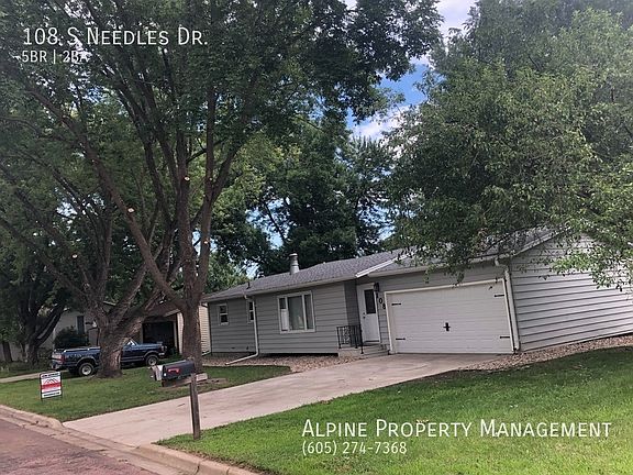108 S Needles Dr, Brandon, SD 57005 is a single family home that contains 1,925 sq ft and was built in 1963. It contains 5 bedrooms and 2 bathrooms. This home last sold for $235,000 in February 2025. The Zestimate for this house is $293,100. The Rent Zestimate for this home is $2,266/mo.