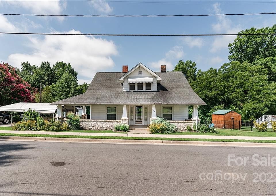Wow! A lot of home for the money. Stately 1.5 story home with granite accents. Large living room that flows into a parlor or home office. Large dining room with wood floors. Kitchen is spacious and has plenty of counter space. Cute breakfast nook. Primary bedroom is on main level and has 2 closets. Secondary bedroom and full updated bath. Enclosed back porch complete the first floor. Upstairs you find 3 bedroom and and unfinished attic area that could be made into another bedroom and full bathroom. Nice lot with 2 storage buildings. Walking distance to two parks.