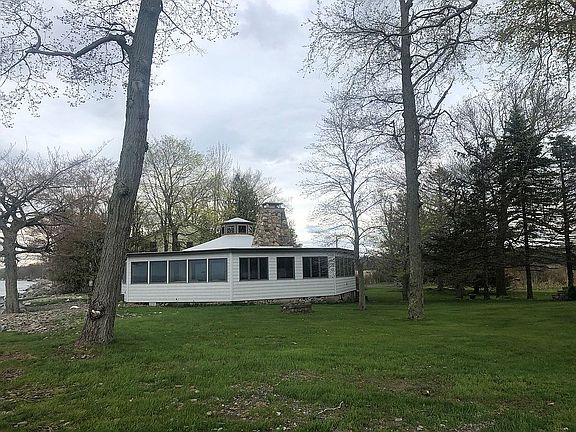 Fabulous one of a kind octagonal lakeside 4 season cottage with stunning panoramic views of Lake Ontario! Come check out this Historic and rare Lake Home built by true artisans with lodge style wood crafting and stone Poured foundation! This beauty features a cozy kitchen, large dining area with views and 3 spacious en-suite bedrooms with Italian porcelain tile baths and new fixtures! Don't forget the Magnificent center great room with hand-hewed black walnut beams and vaulted ceiling and a large fieldstone fireplace with heatilator all illuminated with an octagonal window cupola by day and an authentic ship's wheel chandelier with brass lanterns by night. Complete and total renovation in 2010 including a new LP furnace, New insulation and sheetrock, Anderson windows and doors, like new stone facade and grey vinyl cedar siding! Stunning Wrap around inside porch with new whitewashed pickled bead board walls and the most amazing Lake Ontario views you could ask for! Large .41 acre spacious semi private yard with reinforced seawall, extra lot across road for more parking and spacious 2 car garage for extra storage is available for an extra $30K! Municipal water is available!