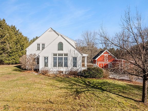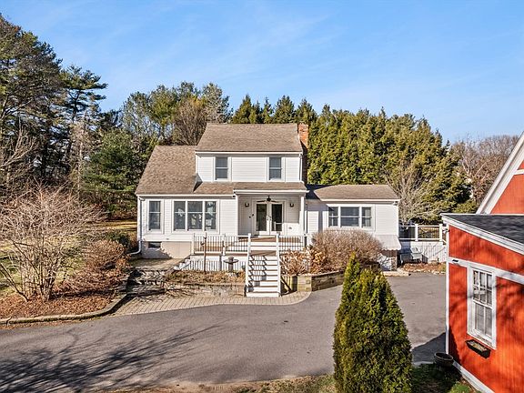 Fall in love with this beautifully maintained property in a picturesque setting with over 4 acres, a big red barn, and your very own pond. This charming home offers a perfect blend of classic New England character and modern conveniences. As you enter this home, you are welcomed into a spectacular newly updated kitchen/dining space flooded with sunlight and a huge island perfect for entertaining. Pass by your built-in coffee bar combo mudroom/office and enter your amazing cathedral ceiling living room with fireplace and economical pellet stove. The living room opens to your sizable back deck where you can admire your beautiful back yard surroundings. There is a first floor bedroom and full bathroom. Upstairs you will find a primary bedroom and second bedroom with an additional full bath. The basement features a workout space, a playroom/den, and an additional office space. Outside you will be thrilled to find a bonus man/woman cave in the barn - it also makes for a great workshop!