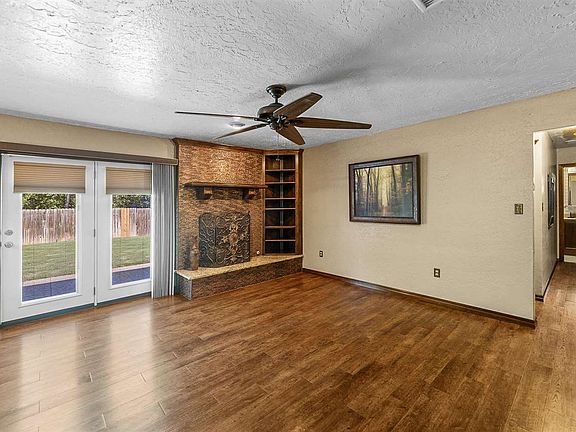 Don't miss this tastefully remodeled home in the desired Sungate Addition. This home has been well maintained and it shows. When entering the property you are greeted with newer plank flooring, a beautifully retiled fireplace. Knotti wood built in cabinets and matching baseboards throughout the home. The kitchen features Knotti ceiling height cabinets, granite countertops, and matching stainless steel appliances. If you enjoy cooking, you will be ecstatic to find out this kitchen also features a double oven. Additional cabinets were also added next to the kitchen for added storage. Both bathrooms have been fully redone. The bathrooms have the same Knotti cabinets and granite counters as the kitchen. The two secondary rooms are decently sized and hold queen beds comfortability. The primary bedroom boasts storage with two closets and extra storage in the primary suite cabinets. The primary suite features a beautiful walk-in shower with an updated glass door. This house's beauty isn't just on the inside. The backyard has a beautiful deck for entertaining or enjoying a enjoying a cup of coffee. There is also pad to place a shed for additional storage if desired. Call the listing agent today to schedule your tour.