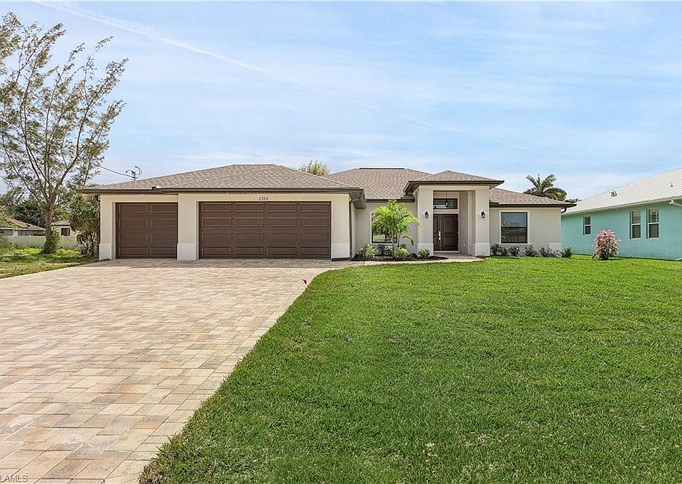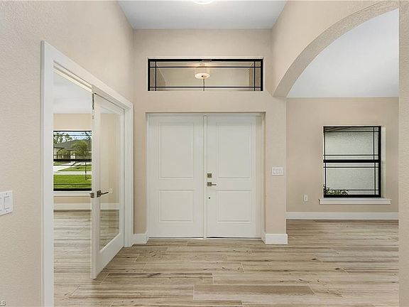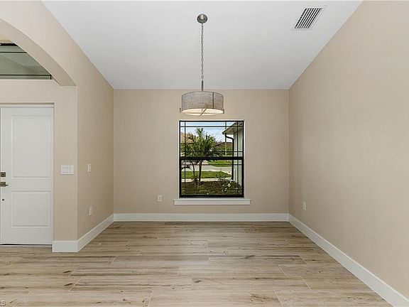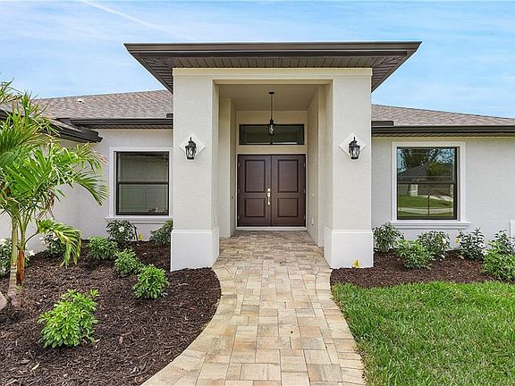 Design detail and quality construction will make you proud to own this 4+den,3 bath, 3 car garage home. Enjoy those beautiful sunny days from your western exposure lanai. This modern style floor plan will surely impress. Double door entryway, foyer opens up to the large living room with vaulted ceilings, dining area and separate den/game room, plenty of room for entertaining. The kitchen is a dream featuring solid wood cabinetry with crown moulding, soft close hardware, granite counters and stainless steel appliances. Other high end features such as 9"x47" porcelain plank tile flooring, granite counters in baths and laundry room, 5" baseboard throughout, all impact windows, doors and slider, tray ceilings in all bedrooms and den. Split floor plan featuring three large guest bedrooms, master bedroom suite with two generous size walk in closets and well appointed master bath with free standing tub, spacious shower and double vanity. Photos from a previous model, finishes and colors may vary. Plenty of room for a pool. Completion date April 2021. Same model nearing completion nearby can be shown. Connected to city water, sewer and irrigation.