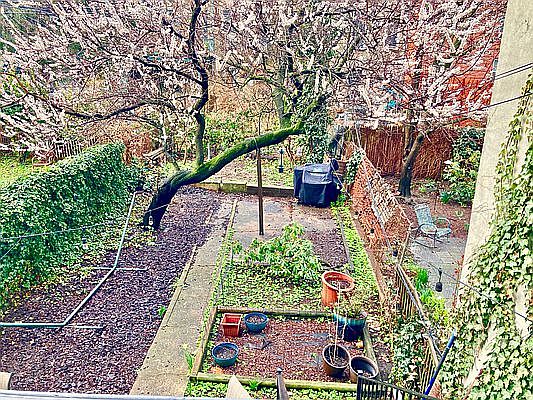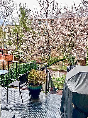 NO FEE, 1400 SQ. FT, DUPLEX. 2 BR/2BA, WITH PVT GARDEN, W/D, A/C, STORAGE & AMPLE WORK SPACE NO FEE - SUNNY Kitchen with D/W. Enjoy coffee on your pvt deck overlooking your flowering garden. Private Garden is approx 20 X 50 FT. Large living room which separates 2 pvt bedrooms. Master fits King bed. High Ceilings. Downstairs is 700 sq. feet with Washer/Dryer, a second bathroom and door leading to your garden. Perfect for Peloton and Gym, Office, TV/Playroom or Storage and Bikes. Great Block near Fab Fifth Ave restaurants and shops, all trains, and walking distance to Prospect Park. Showing Thursday July 20 @ 5-7 pm Saturday July 22 @ 1-3 pm One Pet upon approval. Non Smoking Building Smoking allowed:No