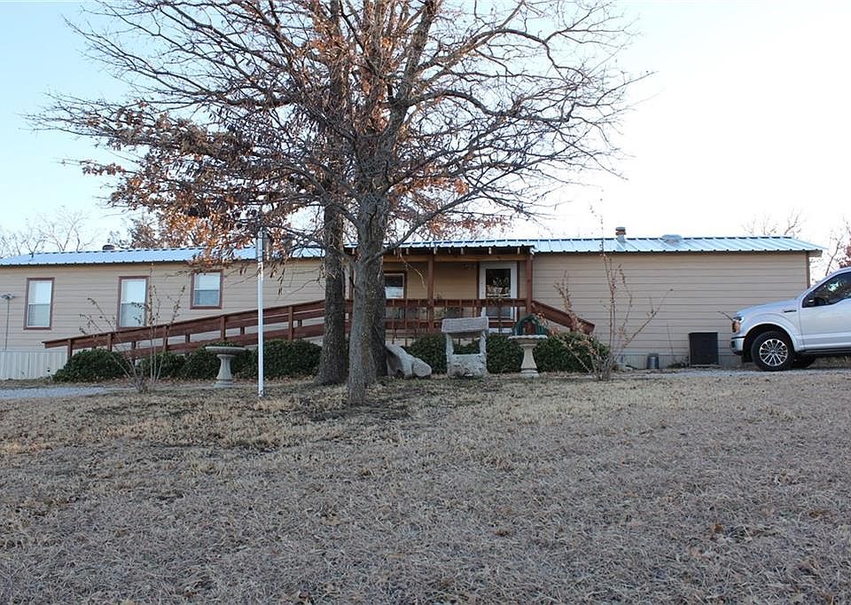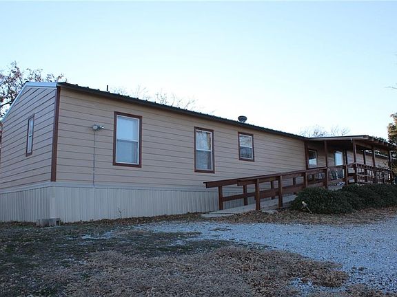 Singlewide mobile home on 1 acre! Enjoy some peace and tranquility in a home with great views of Decatur and Rhome from the front porch. This manufactured home has plenty of post oak trees in the backyard that are home to a wide variety of birds. A large, covered patio with a ramp overlooks the back yard scene. You can feel safe during bad storms in the storm shelter. This home also includes a 250 gallon propane tank that is used to heat the home. Metal roof is 2 years old, as is the hot water heater. A part of the backyard is fenced for dogs. Enjoy an open concept of the living room, dining room and kitchen. The master bedroom is separated from the other 2 bedrooms.
