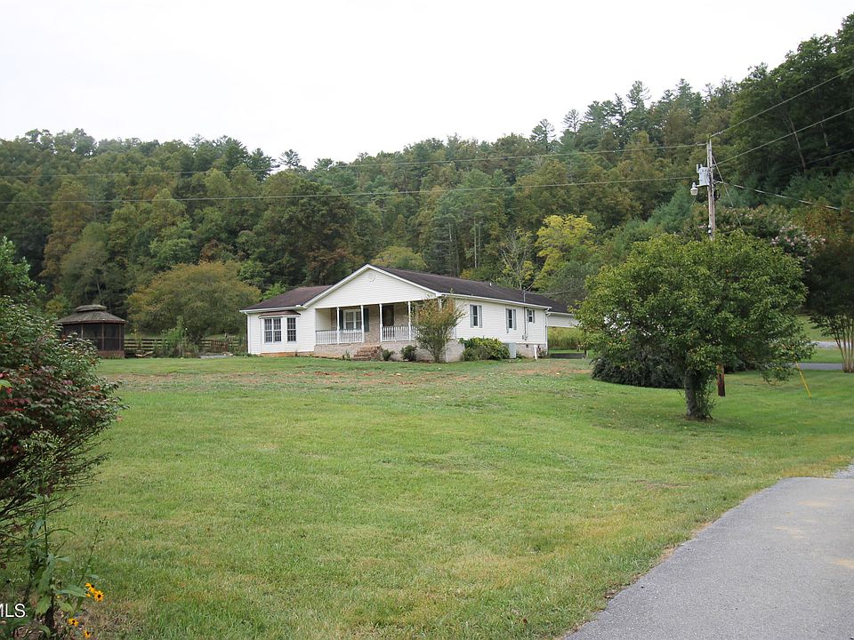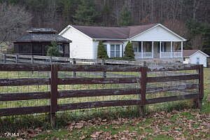 MOUNTAIN MINI-RANCH LOCATED ON BOLD TROUT STREAM Four acre mini-ranch with breathtaking mountain views and over 430 feet of waterfront along the picturesque mountain trout stream Coffee Ridge Creek. There are also several acres of level fenced pasture. There is a large 50' x 36' barn in good condition and a large metal workshop with one personal door one overhead vehicle door and one overhead RV door. The shop has a dedicated office area.There are also several other outbuildings and a nice gazebo. The home has been completely remodeled and is move in ready. The master suite has vaulted ceilings, a huge walk in closet and a full master bath. The other two bedrooms are located in the opposite wing of the house providing separation and privacy. The remodeled kitchen also has a vaulted ceiling and opens to a newer back deck. Some of the information here in has been obtained from a third party and must be verified by the buyer.