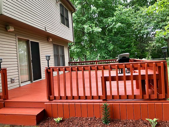 Nature lovers delight* Huge fenced rear yard* Watch the setting sun sitting on the expansive deck with plenty of room for outdoor furniture, grill, etc.* This 4 bedroom 2 1/2 bath home boasts a 25'x14' family room with a gas fireplace and lots of natural light* Special features include: in ground sprinklers, neutral colors throughout, stained woodwork & an extra long garage for additional storage*