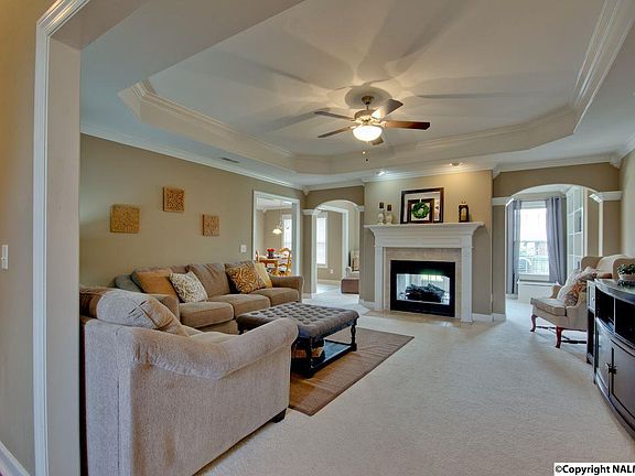 • FAMILY ROOM DESC: Ceiling Fan, Carpet, Smooth Ceiling, Crown Mold, Fireplace, Recessed Lighting, Trey