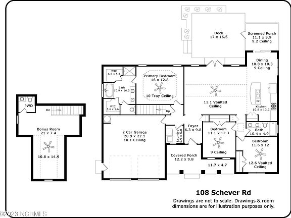 The split-bedroom plan offers privacy from the large owner's suite on the main level, provides 2 sizeable guest bedrooms, and a huge bonus room upstairs equipped with its own half bath that could be used as an office, playroom, or even a fitting space for a teenager to have their own ''wing'' of the home separate from the main living area.