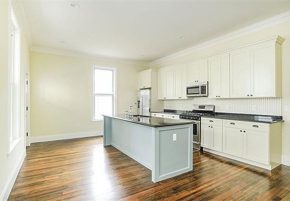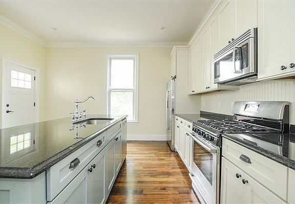 One bedroom for rent in 6 bedroom/2.5 bathroom triplex townhouse featuring 2,700sqft of updated living space with hardwood floors throughout. The front door opens to a breezeway and Victorian hardwood staircase in the entryway. An oversized living room with bay windows and decorative fireplace at the front of the house, eat-in granite country style kitchen at the back with powder room nearby, and a large dining room with decorative fireplace in between all feature high ceilings and large windows. Available bedroom is front-facing, spacious, and located on the 3rd floor. Additional features include front and rear covered porches; backyard area with vegetable garden; large basement with laundry, storage space, and exterior access. Steps from Stony Brook orange line T station and around the corner from multiple bus lines. The other bedrooms are currently occupied by young professionals ages 22-26. Sorry, no pets.