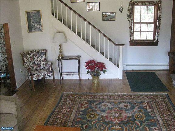 Lovely antique home with rocking chair front porch - complete with a porch swing! Located on a deep, 2 acre lot in bucolic Hopewell Twp - and minutes from the Boro of Pennington, Washington Crossing State Park, Mercer County Equestrian Center and the commuting highways of Routes 95/295. Sunny entrance Foyer, formal Living Room with wood burning fireplace, Dining Room, eat-in Kitchen, Family Room, Mud Room/Laundry plus 1/2 bath. Upstairs - 3 bedrooms and 2 full baths. The oversized 2 car garage offers plenty of room for cars, boats, kayaks, craft equipment - and any extra stuff you can imagine!