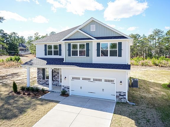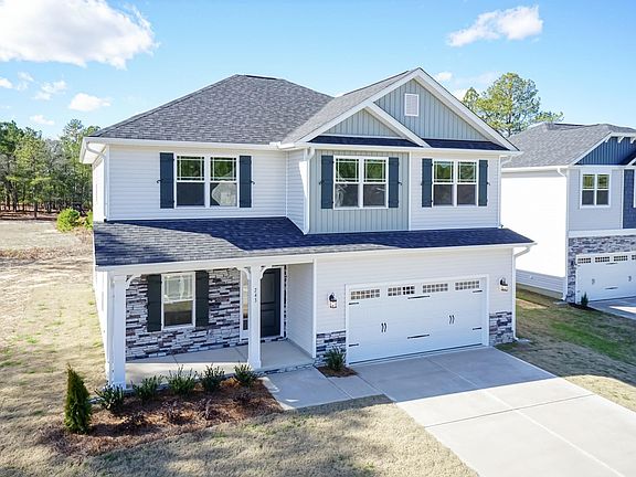Welcome to Carolina Seasons, just 35 minutes from Fayetteville and 15 minutes from Sanford. The main floor offers an open and spacious living area, kitchen and breakfast nook. Large primary bedroom has tray ceilings and crown molding and also includes a large walk in closet. The primary bath has a double vanity, tub, and separate ceramic tile shower. Wainscoting, tray ceiling and crown molding featured in the dining room. Upgraded cabinets throughout the kitchen and bath areas. Laminate flooring package in all main living areas. Only $1000 builder deposit required due at contract signing.