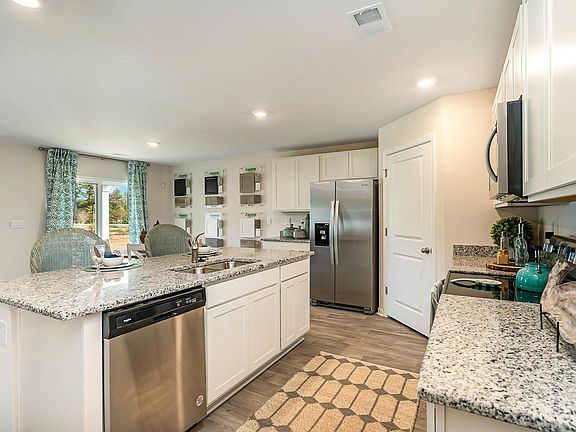 Woodcrest Community is located on a quiet street with very little traffic. Featuring wide homesites, that backs up to Simpson Creek Park. The park is equipped with a playground, picnic area, basketball court, and beach volleyball. Our Cali plan is a thoughtfully designed one level home with a beautiful, open concept living area that is perfect for entertaining. The kitchen features granite countertops, an oversized island, a walk-in pantry, and stainless Whirlpool appliances. The large owner's suite is tucked away at the back of the home, separated from the other bedrooms, with a walk-in closet and spacious en suite bath with a double vanity, 5' shower, and separate linen closet. Low maintenance vinyl flooring in main living areas, baths and laundry room gives the look of wood with easy care and cleanup! Spacious covered rear porch adds additional outdoor living space. This is America's Smart Home! Each of our homes comes with an industry leading smart home package that will allow you to control the thermostat, front door light and lock, and video doorbell from your smartphone or with voice commands to Alexa. 2 inch faux wood blinds will be included on all standard windows. *Photos are of a similar Cali home. (Home and community information, including pricing, included features, terms, availability and amenities, are subject to change prior to sale at any time without notice or obligation. Square footages are approximate. Pictures, photographs, colors, features, and sizes are for illustration purposes only and will vary from the homes as built. Equal housing opportunity builder.)