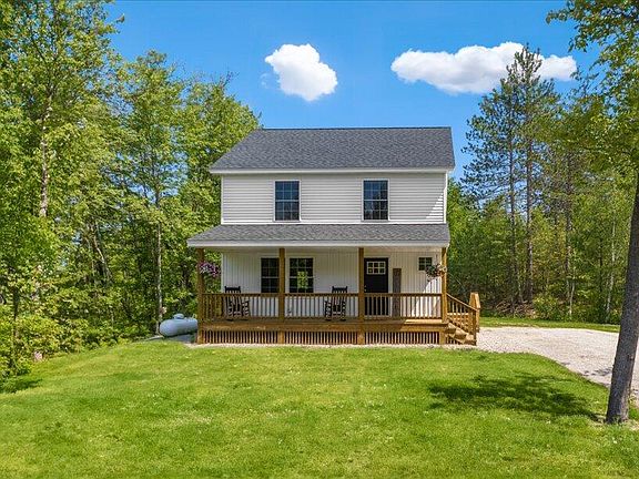Sitting on just over 3 acres you will find this newly built Colonial with large farmers porch. This custom builder leaves no detail overlooked. Upon entry you will see a spacious entry with a half bath for guests. The homes open concept layout that provides 3 bedrooms and 1.5 baths. Features include oak hard wood flooring, granite, solid wood doors. Enjoy the Brook on your private back deck overlooking the large backyard nestled in the trees. Direct ATV and snowmobile access are an added bonus. Pleasant Mountain for skiing or Sebago Lake State park nearby for summer and winter fun!