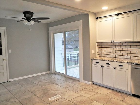 Adorable Family or Retirement Home! This open concept 3 bedroom ranch with 2 car attached garage has been completely remodeled and is move in ready! It features an upscale eat in kitchen with new stainless appliances, beautiful cabinetry, granite counters, and tile floor- it looks just like a magazine photo! New patio doors in the kitchen lead out to a new deck and the lower patio. The large living room has hardwood floors, and an electric fireplace with shiplap surround creating a very relaxing atmosphere. All 3 bedrooms feature hardwood floors, and the upscale bath has been completely updated with gorgeous tile, all new fixtures, and a barn door. The basement is dry & ready for you to use your imagination! Laundry & toilet are there, you could just finish a large family room, etc around them. Great location on a private street- call today for an appointment!