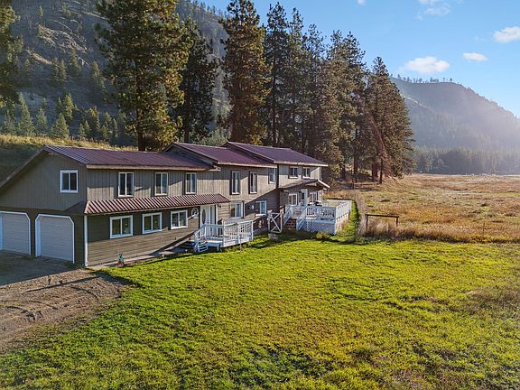 Sitting on over 3 acres & overlooking the mountains, this Superior property offers private, Montana living. Receiving southern sun exposure (SUNSHINE IN THE WINTER), there is plenty of land to build a shop and/or include a few animals. Upon entering, the main floor feels well taken care of with newer vinyl flooring. The kitchen blends a rustic feel & modern functionality with updated appliances, oak cabinets & exposed log ceilings. The range is set on a large center island, ideal for the home chef. This main floor also includes one bedroom, with a walk-in closet & a studio / bonus space that leads to an oversized, two car garage. The other three bedrooms are upstairs. The primary is spacious with vaulted ceilings, calming views, an ensuite bath & walk-in closet. There's also a bonus area that has a wet bar, allowing for the entertainer to let their imagination run wild & make this their own! Call Danni Moore, 406-396-2442, or your real estate professional to schedule a private viewing.