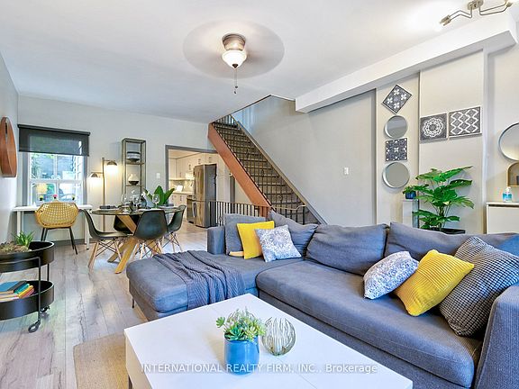Find your gem right here, whether a first time homebuyer, young family upsizing, or investor. Featuring high ceilings, 3 bedrooms, laminate floors throughout. The main floor offers ample space to unwind in the living room and entertain on a large dining area. The eat-in kitchen has plenty of cupboard space and newer appliances and leads to a mud room at the rear with laundry conveniently located on the main floor. Head upstairs to a large primary and second bedroom and a third room perfect for a nursery or home office. This home was newly renovated in 2016 and 2019. The partially finished basement provides a cute rec room and second full bath. A/C wall system for the second floor, New Furnace + A/C for the basement in 2016, Waterproofing + Sump pump installed for the basement in 2016, New kitchen done in 2016, New flooring 2019, potlights added throughout. Despite being close to the energetic vibe of Queen W, you will be amazed at how quiet it is when you relax on your oversized backyard deck while catching a rare view of the CN Tower. Parking is available on Shaw with a permit. Minutes to an elementary school, College Montrose Children's Place, Trinity Bellwoods, Queen W, Ossington strip, shops, it's all here. Walkscore 97, Riderscore 92, Bikescore 90