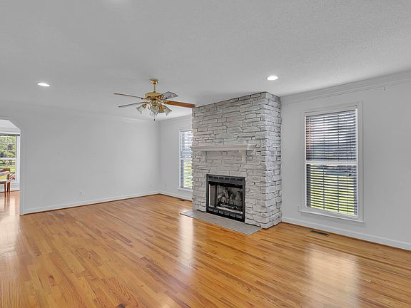 Welcome to your new home in Silver Ridge! The photos simply do not do this one justice. Situated on almost an acre with mature landscaping, this yard is perfect for bonfires and grilling with guests. As you enter the house you are greeted by gleaming, real hardwood floors throughout main living area. A large family room with gas fireplace offers ample space for kicking back and watching Sunday football, or cozying up for a relaxing movie night. The kitchen has it all: custom oak cabinetry, a stainless steel gas range, beautiful granite countertops, and under cabinet lighting. A sunroom overlooks the covered porch that could not be more perfect for enjoying a summer rainstorm on. Upstairs you will find a spacious owner's suite with garden tub, dual vanities, tiled shower, and walk-in closet. Three additional bedrooms with walk-in closets and a flex room. Don't miss the "secret passageway" that connects the play room to the private flex room, or as some may have it, "man cave". Generous attic space with walk-out access means no more pull-down steps for seasonal decor! Oversized heated 23x23 garage with cabinets and countertops, and an additional 7x12 flex space, currently used as an at-home gym. Below the house is tall crawl space, ideal for hiding away that messy workshop! Call and schedule a showing today, because this one has to be seen in person!