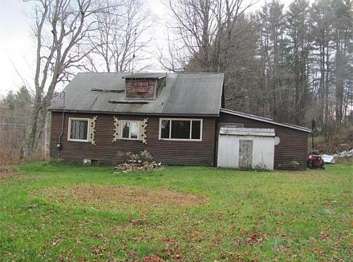 The possibilities are endless. The land has some flat area and some sloping area. The cabin sits up off the road. There is a nice view of the hills and woods across the street. The cabin has been gutted to the studs so right now it is one big open space waiting for your ideas. You could make it a summer get away or a year round home. There are neighbors but not too close. Call me and I can give you details. This house needs to be either a rehab loan or a cash sale.