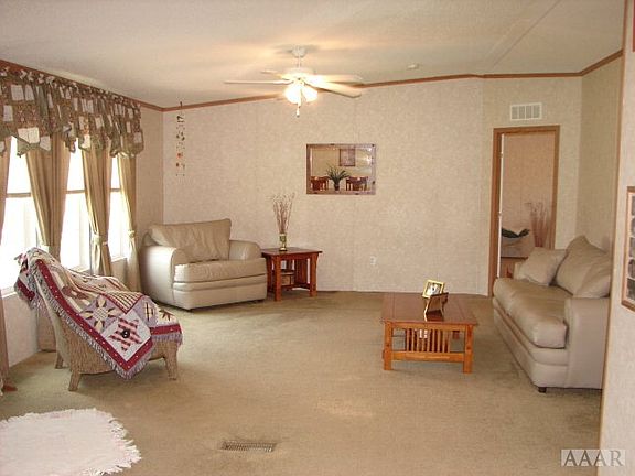 You won't believe the size/condition of this wonderfully maintained, nicely decorated 3BR/2BA home in quiet Perquimans Co. locale. Plan includes formal living & dining, huge den w/'FP, fully-equipped kitchen (w/eat-in area & other delightful design features). utility room (w/washer/dryer), 2 guest BRs w/shared guest bath, & not-to-be-missed Master Suite w/sitting area, walk-in closet & luxury bath w/jetted tub, separate shower, dual vanities, more! The fenced yard, rear deck, storage shed & easy-to-maintain lot are added features. Close to E.CIty, OBX, & VA. All this for an amazing LOW price!!