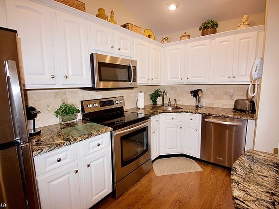 Completely updated & ready for quick occupancy! Kitchen w/ custom built in table, upgraded granite & cabinetry, new stainless appliances, remodeled master bath, updated 2nd bath, new windows, slider. Move right in! 2nd flr ESSEX II end unit w/ vaulted ceilings, freshly painted interior, HWD flrs. 2012 Kitchen w/ tumbled marble backsplash, upgraded granite, 2015 SS dishwasher & refrigerator, 2014 SS range, microwave, vaulted ceiling, recessed lighting, built in granite top breakfast bar, updated cabinetry. 2010 triple pane windows, 2012 triple pane slider. 2012 updated main bath. 2002, 2018 remodeled master bath w/ jetted glass encl. tub and Italian tile. 2015 stackable washer/dryer. 2004 HVAC. 2016 roof. Large basement storage. Garage closest to building. Private quiet location. Close to NYC train, bus.