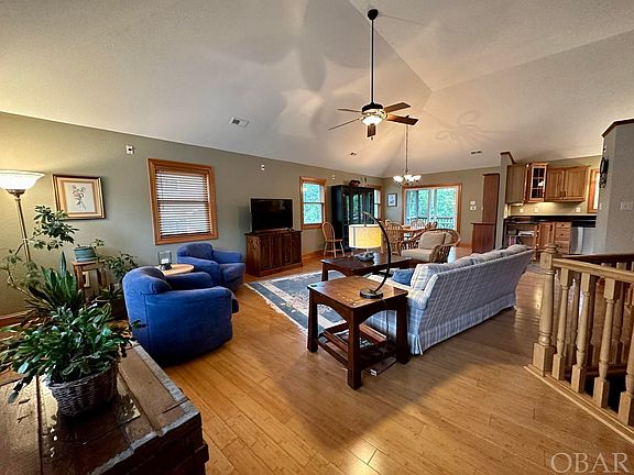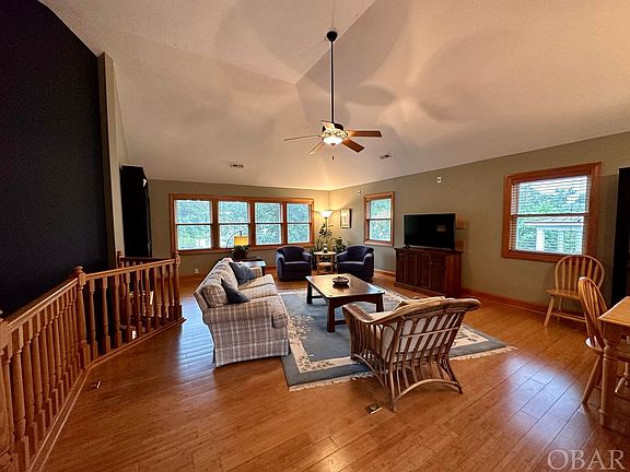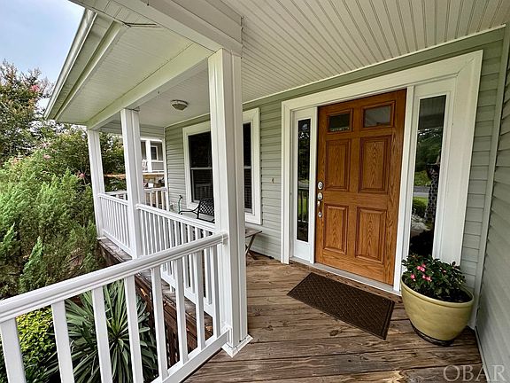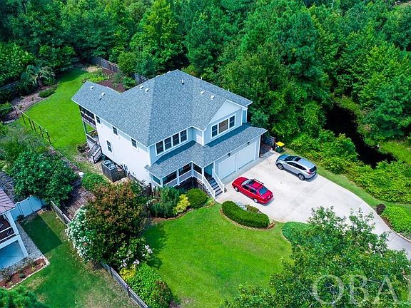 Located off the beaten path in the quiet neighborhood of Swan View Shores, this impeccably well-maintained custom home has so much to offer. The first floor of the home includes a study/home office with French doors right by the front door, perfect for remote work. Spacious two car garage has slatwall and gridwall organization systems, utility sink, workspace, and whole house water treatment units. A large additional living space has kitchenette, full bathroom and bedroom. This space would make an excellent rec room, in-law suite or rental space with its own private entrance, covered deck, and shared access to the laundry room.  Upon entering the second floor you are greeted by an open floorplan living and dining space with cathedral ceilings, bamboo floors and plenty of windows making the room bright and spacious. Custom 2” wood mini-blind window treatments match the natural finish wood trim on both floors. The kitchen boasts hickory cabinetry, granite countertops, an under counter wine cooler with dual-zone temperature control, reverse osmosis water system, large corner pantry, and porcelain tile floors. En-suite bedroom includes two walk-in closets and large custom tiled shower plumbed with multiple shower heads and body jets. Also located on this floor is another bedroom and hall bathroom with a large soaking tub. Off the dining area is a screened porch and sun porch perfect for enjoying meals overlooking the landscaped backyard.  Custom 6-foot privacy fence encompasses the peaceful backyard which includes raised gardening beds, fruit trees, and fragrant perennial flowers. The beautiful mature landscaping is sustained by a well and 7 zone irrigation system (3 turf zones and 4 drip zones). Home has gutters with stainless steel leaf guards and paver block pathway and patio which is lit with motion sensor lighting at night. The neighborhood is a pleasure to walk and includes a playground and sound front park which provides excellent opportunities for enjoying the sunsets.  The 1/3-acre (15,965 sq ft) homesite makes for a quiet setting and is just a seven minute drive to the beautiful Outer Banks beaches…must see to appreciate this incredible property!