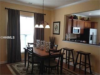 This beautiful Pine Spring with sun room and extra large (16'x18') screened porch w/hard roof truly shows like a model. It has 5" wide wood floors throughout (exc. sun room and wet areas), custom drapes, built-in cabinets in great room and master closet, crown molding, epoxy flooring in garage, extended patio for grill, upgraded ceiling fans, stainless appliances, gas range, granite kitchen counter tops with tumbled marble backsplash, window treatments (2" blinds) throughout, hurricane shutters, gutters, architectural shingles. AND Beaufort County taxes. This home is a must see!!! (909112)