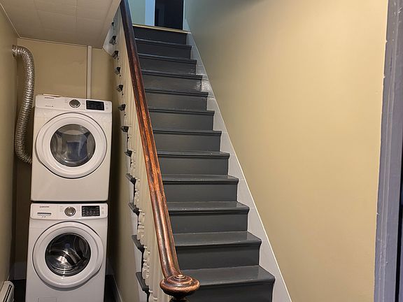 2 bedroom, upstairs apartment. Freshly painted with all new carpets. Washer/dryer. refrigerator and kitchen appliances. Walking distance to the schools and public transit.