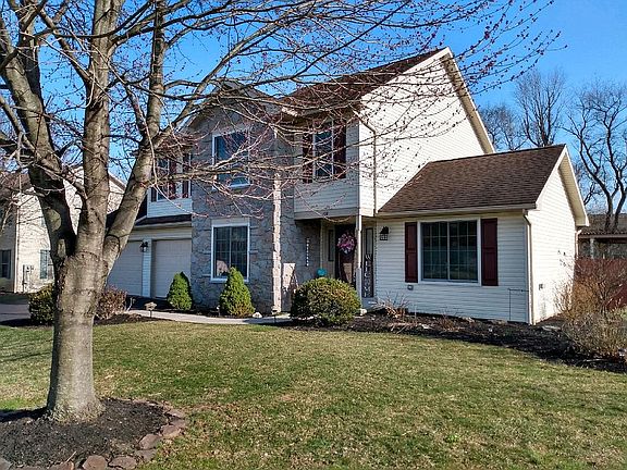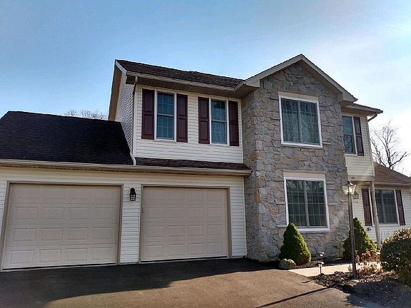 Welcome to this beautiful well maintained custom-built home located in the gorgeous Tree Line Development in the Northern Lebanon School District. Situated on almost half an acre, this three bedroom three bathroom home has everything you could ask for. As you enter the foyer you'll be greeted by a grand entranceway with cathedral ceilings and beautiful hardwood floors. The spacious floor plan features a bright eat-in kitchen with an island and pantry. The kitchen opens into a cozy family room with cathedral ceilings and a cast iron wood pellet stove surrounded by a brick hearth. The main level also includes a large dining room, a bathroom with laundry room, and an oversized two-car garage. The sliding glass doors off of the kitchen open to an entertainers dream! The backyard boasts a hot tub, a covered pergola and patio, and a gorgeous built-in brick fireplace, perfect for those outdoor gatherings. The oversized yard comes with a custom-built shed and plenty of space for a vegetable garden for those with green thumbs. The second level offers a large primary suite with an ensuite and a walk-in closet as well as two additional bedrooms and another full bath. Large unfinished basement provides ample storage space or can be transformed into a great family room, entertainment space, or office! Upgrades include brand new Anderson windows throughout, new hybrid hot water heater (2020), and newer HVAC. A short drive from Hershey Park and Lancaster. Convenient to Rt 22, I-78, I-81, and the PA Turnpike. This home will not last long. Schedule your showing today!