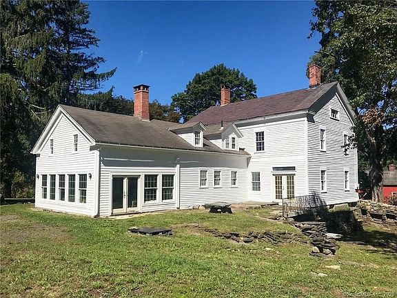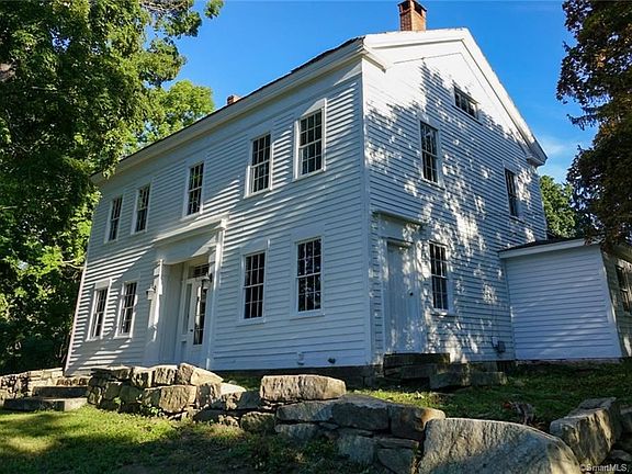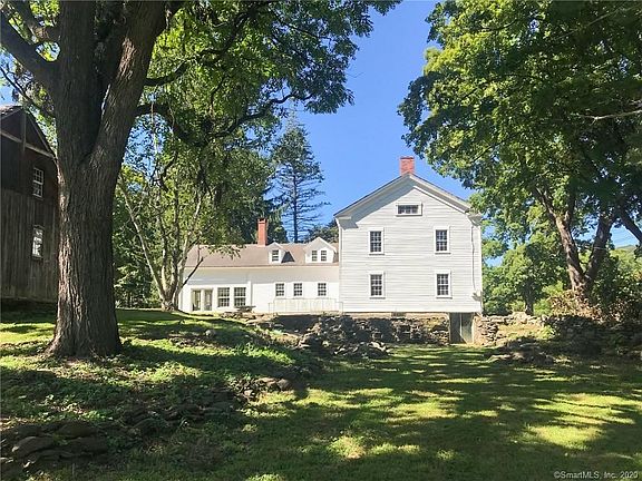 This stunning 1806 federal colonial estate house is set back from the quiet rolling tree-lined country road in upper Merryall, only 80 miles from Manhattan. Distinctive features include wide plank chestnut floors, exposed hand-hewn chestnut beams, 9' ceilings, 6 fireplaces, plus an original beehive oven. The 1.88 acres have a historic gabled roof barn, mature trees and are surrounded by protected unbuildable land. To complement the original stone walls, a former owner carried out a wonderful vision: rocks and some massive slabs are artistically landscaped as tiered seating and meditation areas around a miniature pond. Located a short walk to Nostrand trail, a 7-minute drive to New Preston's antique shops, wine bar and café, and the Northville food market, 8 minutes to Lake Waramaug, and 12 minutes to downtown New Milford. Move in and continue the loving restoration of this home with your style and creative touch. Some of the rooms may be ideal to configure as a separate wing for a master suite or guest area utilizing an existing private access stairway.