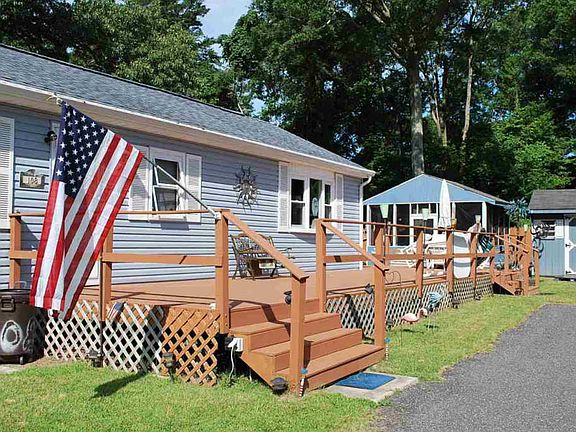 Great starter home or downsizing seashore escape getaway in a residential neighborhood. Two bedrooms and one bath. Huge wrap-around deck for socializing or large family gatherings. Ceiling fans throughout. Property is surrounded by mature trees and plenty of storage in the two sheds. Above ground pool for cooling off and enjoying the children. Large detached screened-in porch for bug-free dinig. Being sold furnished, less personal items, so you can start your escape right away. Easy to show. Lockbox.