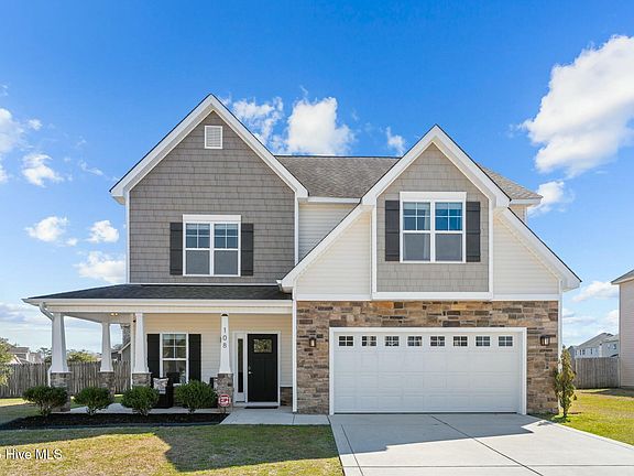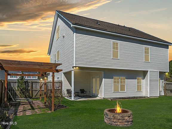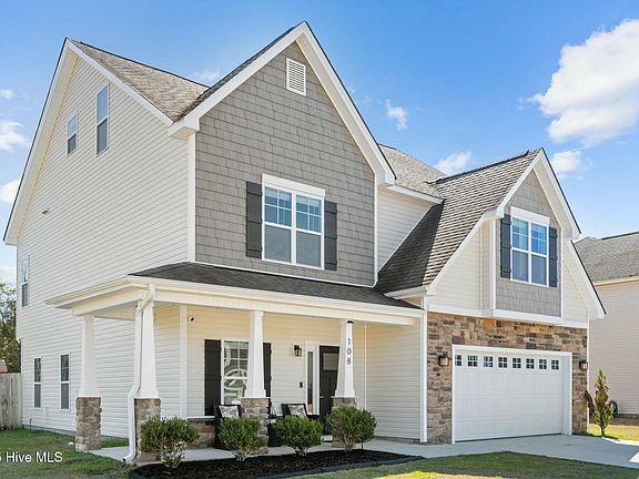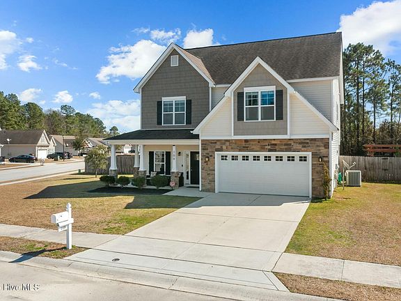 Welcome to one of the largest homes in the picturesque neighborhood of Hidden Oaks at Hunters Creek! Situated on a prime corner lot, this stunning three-story home offers an abundance of room and thoughtful design, making it perfect for anyone looking for ''lots of space... but make it nice!'' Step onto the delightful wrap-around front porch, perfect for relaxing with a good book on a Saturday morning or just soaking up the quaint sounds of the neighborhood. Inside, you'll find an immaculately kept interior with tons of character and charm! The elegant archways, updated light fixtures, newer paint, and laminate flooring throughout the main living space are just a few highlights. The kitchen is a dream with luxurious countertops, subway tile backsplash, and ample cabinet space for all your storage needs. The large island is perfect for gatherings and laughs with loved ones. Just off the kitchen is a perfect mud-room/drop-zone for shoes and bags. Upstairs, you'll find brand-new carpet throughout the second and third floors! The expansive primary suite is a true retreat, featuring grand double doors and plenty of room to unwind. It also has the most darling window seat and a huge walk-in closet! Need a private guest space? The third floor offers seclusion, featuring a private retreat with its own bath, making it great for short-term or long-term guests, a secluded home office, or practically anything else you could want. Outside, the fully fenced backyard is designed for privacy and relaxation, complete with a covered patio and pergola—ideal for enjoying those upcoming spring days. All of this is just a short drive to Camp Lejeune, shopping, and beautiful beaches. If you're looking for space, style, and location—this is the one! Don't miss out on this one-of-a-kind home!