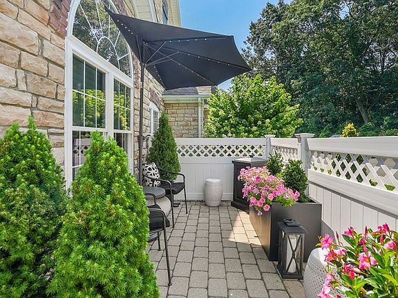 Sophisticated garden style condo at desirable Stonybrook Village. Meticulously maintained. Multiple upgrades. Open concept corner unit w/cathedral ceilings throughout. Arched windows provide abundant natural light. Gas fireplace w/custom mantle & marble surround/hearth. Serene 4-season Sunroom w/French doors, sliding windows(wicker & wood furniture stay!) Kitchen boasts granite countertops, breakfast bar, excellent cabinet storage, new SS KitchenAid appliances, marble backsplashes, skylight, accent lighting above/below cabinetry. Primary Bedrm w/tiled en suite, dual vanities, skylight, walk-in shower, & walk-in closet. Second Bedrm w/custom closet & upgraded adjacent bath. Family Rm w/double doors offers versatility as a home office/fitness space. Laundry Rm w/new LG washer/dryer. Warm hardwood floors in living/dining areas. Premium wall-to-wall carpeting installed in 2021. High-efficiency windows and frames installed throughout in 2022. Custom Hubbardton Forge chandeliers & lighting!