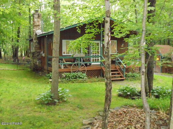 Country Cabin in the woods! Lots of custom woodwork inside...2 bedrooms, 1 bath, living room with stone FP/Pellet stove, hardwood floors and cathedral ceiling/wood beams. Covered front porch, 2/3 of an acre and very private with circular driveway and nice backyard! Stone patio , stone walls and landscaped yard make this the ideal home for you!INCLUDES LOT TO LEFT OF HOUSE