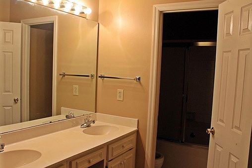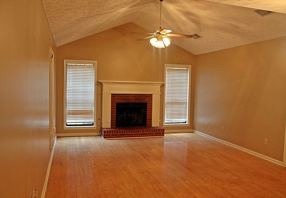 Wonderful 3 Bedroom/ 2 Bath home with 2 car garage in cul-de-sac! Quiet Neighborhood! Kitchen features lots of cabinets, dishwasher, electric stove/oven, refrigerator and breakfast bar looking into dining area! Dining area open to living room that features harwood flooring, fireplace and vaulted ceilings! Master suite has double vanities, jetted tub and walk-in closet! Split floor plan with guest rooms sharing a hall bath! Storage in garage area and detached storage just off the covered patio. Children's play set and area inside the large privacy fenced back yard! Convenient to shopping and schools!