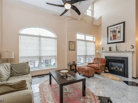 THIS STUNNING, UNIQUE TOWNHOUSE HAS IT ALL. Light from arched windows and Cathedral ceilings drench the main living area. Open floor plan. Designer touches throughout, incl imported Italian marble flooring, Hunter Douglas ceiling fans and blinds, custom FP, and a California Closet system in WIC in MB. Flexible layout - large loft space can be 3rd BR, family room or WFH space. Beautiful kitchen with SS appliances, . Master suite has a balcony, WIC, large bathroom with jetted tub. Relax in the onsite swimming pool and Clubhouse. Meticulously cared-for unit and grounds. Attached garage. Large laundry room on 3rd Fl. Tons of closet space. Close to NYC transportation, major highways, shopping, restaurants, parks. Pet friendly. Plenty of guest parking. Tranquil. You won't need to do a thing. Feels like home.