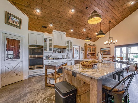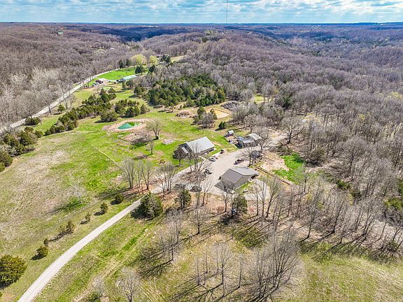 Country home for sale on acreage in the Southern Missouri Ozarks! Located near the town of Fordland, MO, this homestead has so much to offer from the spacious home to the mixture of open and wooded 18.83 surveyed acres m/l. The custom metal roofed and sided home welcomes you with its timber framed front porch, vaulted wood ceilings and open concept living space. With 4 bedrooms and 2.5 bathrooms, this home has a good flow and ample storage. Upon entering the home, the dining space and kitchen with a large island for barstool seating with granite counter tops lay to the right. Double ovens, cooktop with wood hood vent that extends all the way to the ceiling and an antique pantry door inviting you to store anything from appliances to drygoods. The other half of the main living area features a floor to ceiling flagstone gas fireplace in the living room and what is currently being used as an office area with ample light brought by the large front windows. The master suite is spacious with the master bathroom featuring both a walk-in shower, a soaking tub, and a vanity with double sinks. The master bath wraps around to a large walk-in closet with organizers. The concrete floors feature radiant heat supported by the outdoor wood burning boiler stove and back up propane furnace. The back up propane Generac generator gives you peace of mind. A pond, front field, fenced pasture and smaller fenced pen area for a variety of animals on this hobby farm from chickens, to pigs and cows. Custom built shop and lean-to area allows for additional covered storage area. The shop is insulated and equipped with 220 power, concrete floors, extra storage room, potential office, and a half bathroom. The shop is heated and cooled making a comfortable work/hobby setting. Additional outbuildings include a 2 bay open face machine shed and large RV carport with Hook-ups. Garden space, a hoop house, chicken house and chicken run complete this homestead.