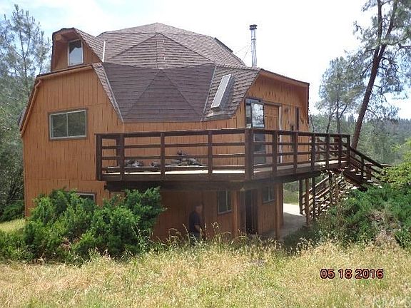 Can you say, One of a kind!!" Come check out this unique dome style home that has 2 bedrooms and 2 bathrooms, all with goregous views close to the Foreman creek recreation center and Lake Oroville! With 5 Acres of private land, your oppurtunities are endless. A Detached mobile home is in close quarters that has a full kitchen and stove so you can cook with easy as you fix up your very unique dome abode.