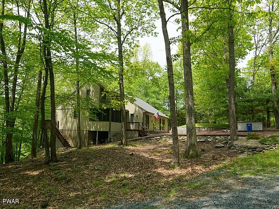 Tanglwood Lakes Golf Course Home located on the 11th Fairway with Privacy Galore! Home featuring 5 Bedrooms, 4 Bathrooms, Den/Office, Hardwood Floors, Stone Faced Fireplace in Living Room, Sky Light, Decks, Screened In Porch, Lots of Parking, Unfinished Basement. This Home has Lake Rights to Lake Wallenpaupack and Tanglwood Lake. Community offers a Beach on Lake Wallenpaupack, Boat Slips, Pavilion overlooking Lake Wallenpaupack, Tennis Court, Children's Play Area and Security. Great central location. Make your appointment today.