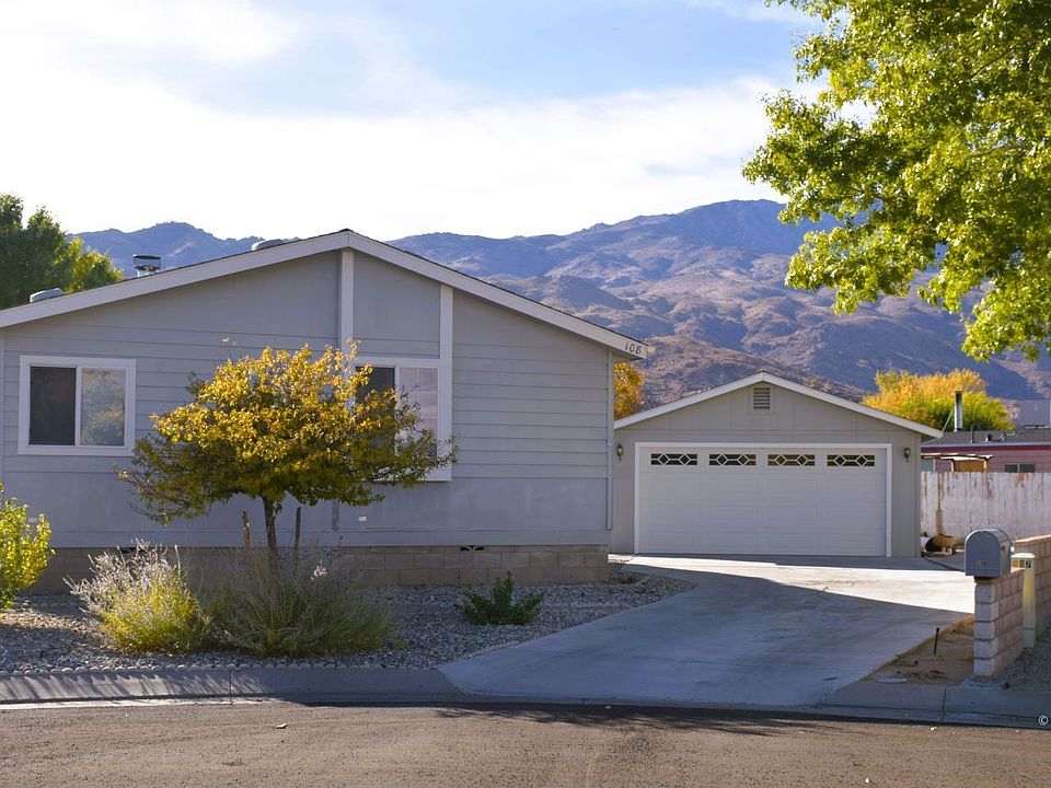 This bright and sunny home has so much to offer such as new laminate flooring, vaulted ceilings, separate laundry room, large, detached garage with ample storage and RV parking with hookups. Low maintenance landscaping, an incredible view of the Sierra from your backyard and the Inyo range from your front yard. Bonus room with closet can easily serve as a third bedroom or office. Lovely French doors with screens off the dining area and a large kitchen with built in island. This quiet cul-de-sac location could be your Big Pine dream home destination!