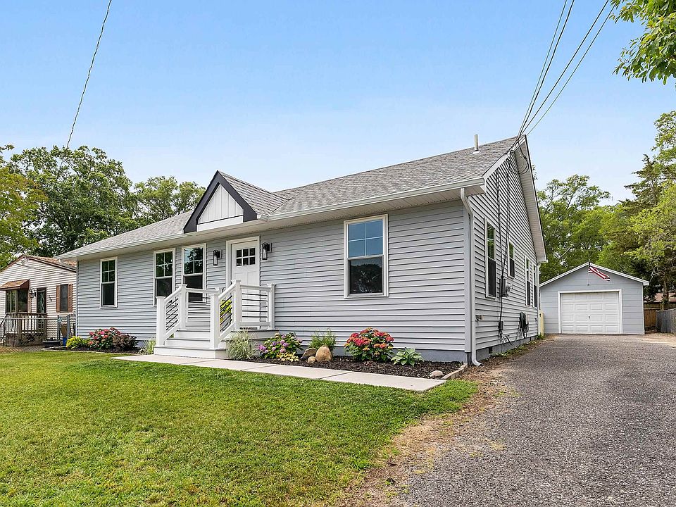 This home has been loving and beautifully renovated with expert craftsmanship, tasteful decorator choices and attention to detail. Truly a gem! Enter from a landing finished in a blended wood look composite into an open floor plan kitchen/living and dining room. The perfect layout! You will love the farmhouse style wide plank Engineered Hardwood flooring that runs throughout the home; durable, very appealing and a great neutral backdrop for your furnishings. The kitchen is spacious, has a pop of fun tile backsplash, solid marble countertops and stainless appliances. The crisp white cabinets feature crown molding and soft close doors. There is a wonderful all season's room overlooking the fenced in backyard that has room for a pool! You will love relaxing and entertaining in this great space. Four lovely bedrooms done in soothing coastal tones and two gorgeous tile bathrooms with designer marble top vanities and finishes give you all you need for a comfortable and stunning place to call home. Extras include washer and dryer, Huge attic storage via pull-down stairs, detached garage big enough for your vehicle, golf cart or just lots of good storage, nice sized yard, attractive flower beds, off street parking and so much more! Call now!