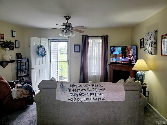 This well maintained home is adorable and move in ready. Just minutes from Elizabeth City, this home is not in a flood zone, has county taxes only and Dominion utilities. The 3 bedroom, 2 bath home has lots of updates, split floor plan, patio and storage shed. Kitchen/dining has tiled floors, backsplash and under cabinet lighting. Living room has corner fireplace and thermostatic controlled logs. Master bedroom has private bath with tile floors and two separate closets, one a walk-in. Very quiet cul-de-sac and lots of privacy. A must see!