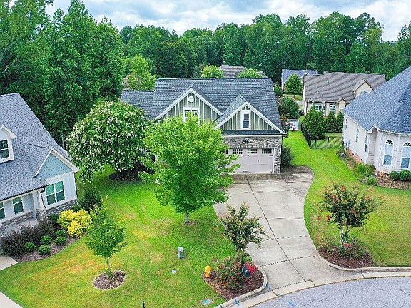 Five Bedroom/Three Full Bath home with a Bonus in Everwood of Garner! This Craftsman Stunner has a welcoming Rocking Chair front porch and is situated on a culdesac with wooded treeline views. Open Floorplan with gleaming hardwood floors! Family Room with gas log fireplace. Dining Room just off the Foyer entry. Kitchen boasts light cabinets with tons of storage space, granite countertops, backsplash, SS appliances, and an eat-in breakfast nook. Mudroom/Laundry with storage shelving is just off the kitchen at entrance to the garage. First Floor Owner's Suite with Owner's Bath (with soaking tub and stand alone shower)) and an amazing Oversized WIC with custom shelving. Two additional Bedrooms on the first floor with FULL bathroom! Second floor has two additional bedrooms, a Bonus, and a HUGE walk-in unfinished storage space (almost 400 sq ft) that can be finished off for a media room or additional bedroom/bonus space! Screen porch is perfect for upcoming fall evenings. Grilling patio just off porch steps. Large flat lot. Great location just minutes from White Oak, Dining, Highway Access and Hospitals!