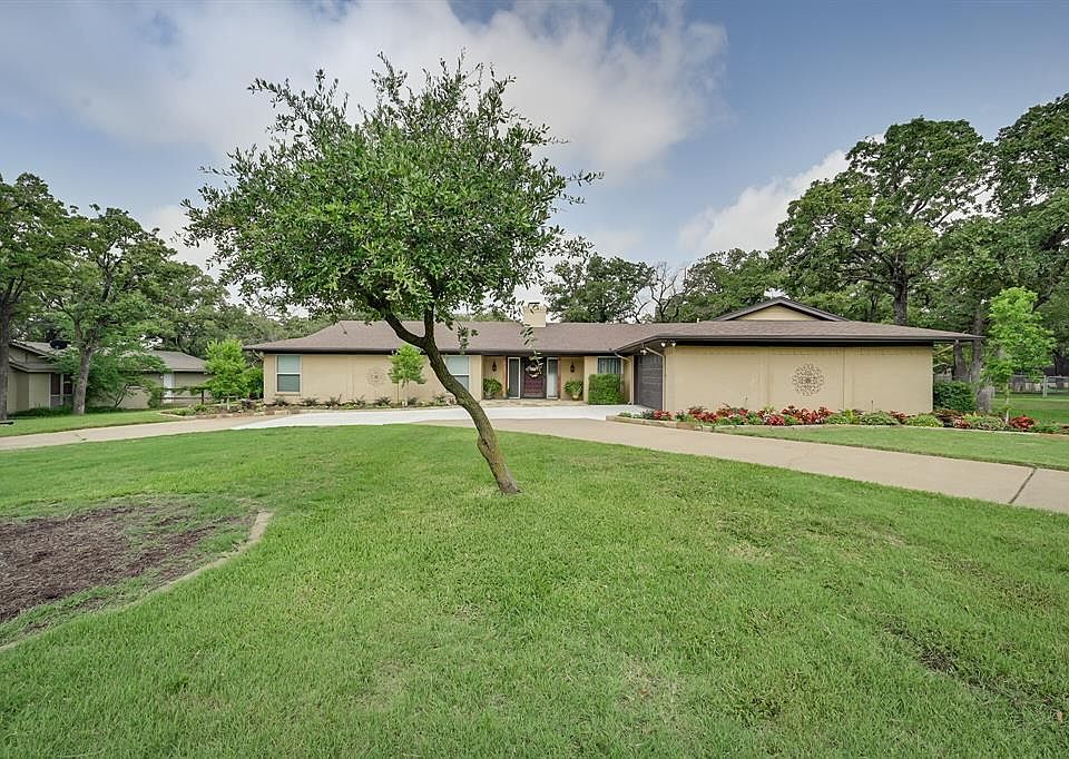 STUNNING Country Living in MANSFIELD ISD. This ranch style home sits on almost .5 acres, has a circle drive, tons of curb appeal. 2nd drive for boat or RV access, and new metal gate for easy access to the back yard. Large entry, formal dining, and gorgeous kitchen with granite counters, beautiful back splash, double oven, butcher block island, hammered brass farm sink, and large eat in area with wine cabinet. Enormous living space with the floor to ceiling stone fireplace, wood floors, and lots of light and bright windows. Large master suite with dual sinks, OVERSIZED shower and walk in closet. Split bedroom arrangement, large laundry room, oversized garage, & shaded backyard with new metal storage shed.